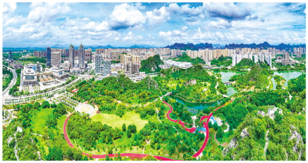 据悉,山水公园作为桂林市系统化全域推进海绵城市建设的示范项目,以“渗、滞、蓄、净、用、排”为核心理念,通过海绵化改造全面提升生态功能与水系景观价值。山水公园海绵化提升改造工程今年4月正式开工,8月初完工,改造内容包括下沉式绿地、雨水花园、生态健身步道等,极大地提升了公园的功能和颜值。