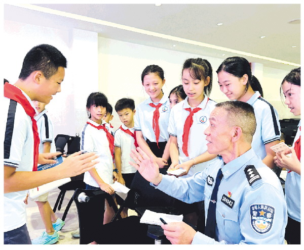民警于伍生与小学生分享阅兵观礼荣耀时刻
