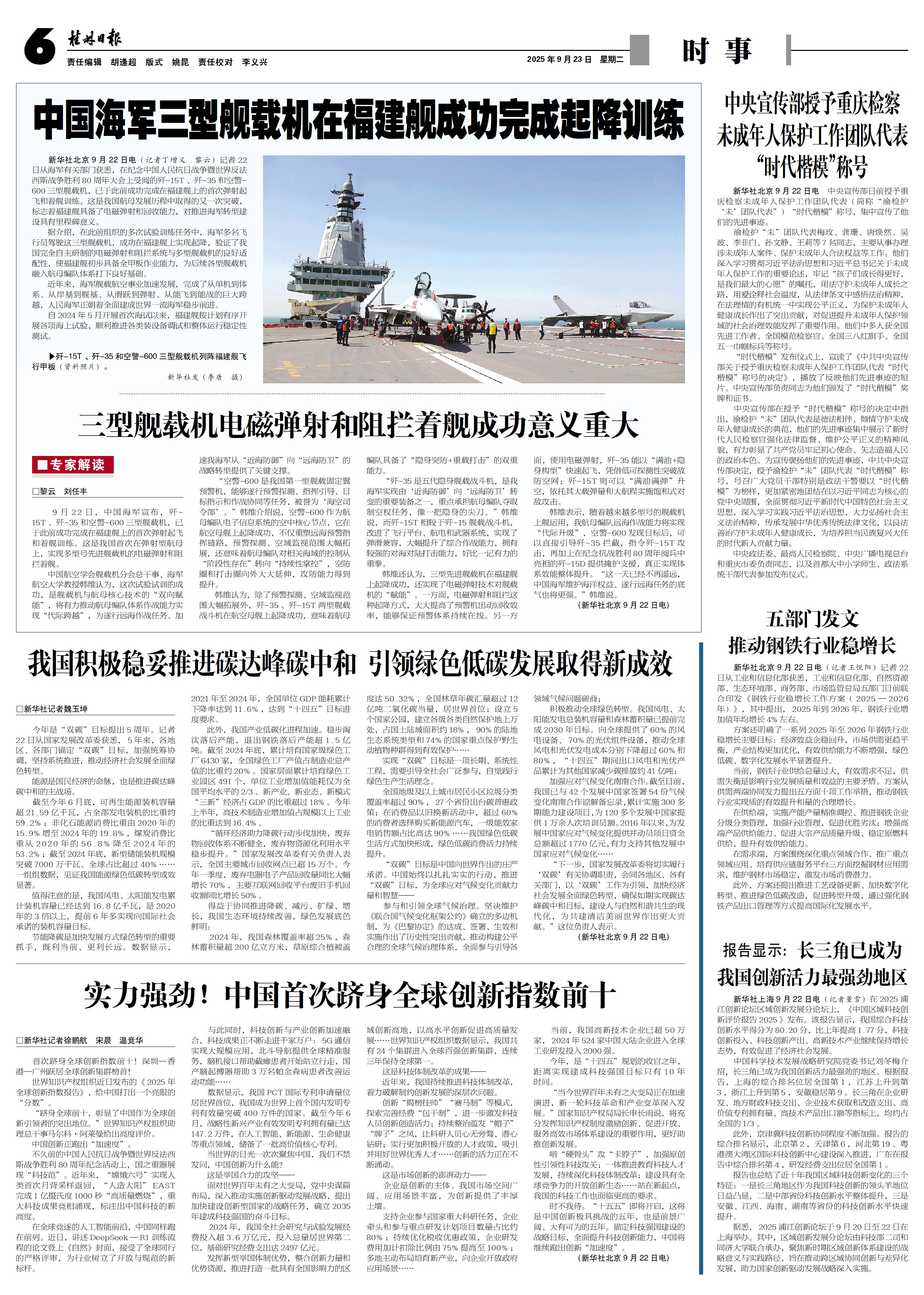 □黎云 刘任丰 9月22日,中国海军宣布,歼-15T、歼-35和空警-600三型舰载机,已于此前成功完成在福建舰上的首次弹射起飞和着舰训练。这是我国首次在弹射型航母上,实现多型号先进舰载机的电磁弹射和阻拦着舰。 中国航空学会舰载机分会总干事、海军航空大学教授韩维认为,这次试验试训的成功,是舰载机与航母核心技术的“双向赋能”,将有力推动航母编队体系作战能力实现“代际跨越”,为遂行远海作战任务、加速我海军从“近海防御”向“远海防卫”的战略转型提供了关键支撑。 “空警-600是我国第一型舰载固定翼预警机,能够遂行预警探测、指挥引导、目标指示和作战协同等任务,被誉为‘海空司令部’。”韩维介绍说,空警-600作为航母编队电子信息系统的空中核心节点,它在航空母舰上起降成功,不仅重塑远海预警指挥链路,预警探测、空域监视范围大幅拓展,还意味着航母编队对相关海域的控制从“阶段性存在”转向“持续性掌控”,空防圈和打击圈向外大大延伸,攻防能力得到提升。 韩维认为,除了预警探测、空域监视范围大幅拓展外,歼-35、歼-15T两型舰载战斗机在航空母舰上起降成功,意味着航母编队具备了“隐身突防+重载打击”的双重能力。 “歼-35是五代隐身舰载战斗机,是我海军实现由‘近海防御’向‘远海防卫’转变的重要装备之一,重点承担航母编队夺取制空权任务,像一把隐身的尖刀。”韩维说,而歼-15T相较于歼-15舰载战斗机,改进了飞行平台、航电和武器系统,实现了弹滑兼容,大幅提升了综合作战能力,拥有较强的对海对陆打击能力,好比一记有力的重拳。 韩维还认为,三型先进舰载机在福建舰上起降成功,还实现了电磁弹射技术对舰载机的“赋能”。一方面,电磁弹射和阻拦这种起降方式,大大提高了预警机出动回收效率,能够保证预警体系持续在线。另一方面,使用电磁弹射,歼-35能以“满油+隐身构型”快速起飞,凭借低可探测性突破敌防空网;歼-15T则可以“满油满弹”升空,依托其大载弹量和大航程实施饱和式对敌攻击。 韩维表示,随着越来越多型号的舰载机上舰运用,我航母编队远海作战能力将实现“代际升级”,空警-600发现目标后,可以直接引导歼-35拦截,指令歼-15T攻击,再加上在纪念抗战胜利80周年阅兵中亮相的歼-15D提供掩护支援,真正实现体系效能整体提升。“这一天已经不再遥远,中国海军维护海洋权益、遂行远海任务的底气也将更强。”韩维说。 (新华社北京9月22日电)