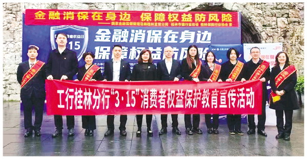 工行桂林分行在桂林东西巷开展“3·15”消费者权益保护教育宣传活动,该行高忻行长、文博副行长参与活动。