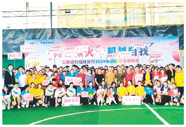 工行桂林分行举办2024年“青春似火 超越自我”团建趣味运动会。