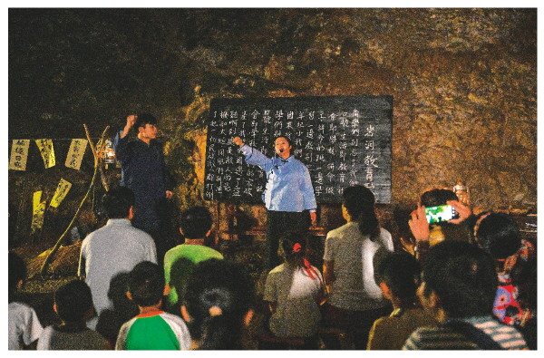 ▲在七星岩里,游客正在体验这堂“岩洞里的课”。