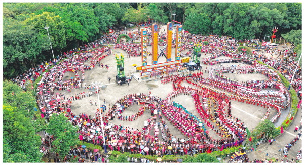 ◥这是云南省德宏州陇川县第十六届(2025年)目瑙纵歌活动现场(10月2日摄,无人机照片)。