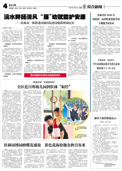 □本报记者 文新军 医者清,则患者乐;院风正,则民生和。近年来,桂林市紧扣“清正党风、清朗院风、清新医风、清明行风”目标,多措“廉”动、同向发力,将清廉建设融入医院治理全过程,以实实在在的成效守护人民群众的健康福祉,为打造世界级旅游城市构筑起一道坚实的“健康屏障”。在近日召开的全区清廉医院建设工作现场推进会上,桂林市的经验做法受到会议的肯定。