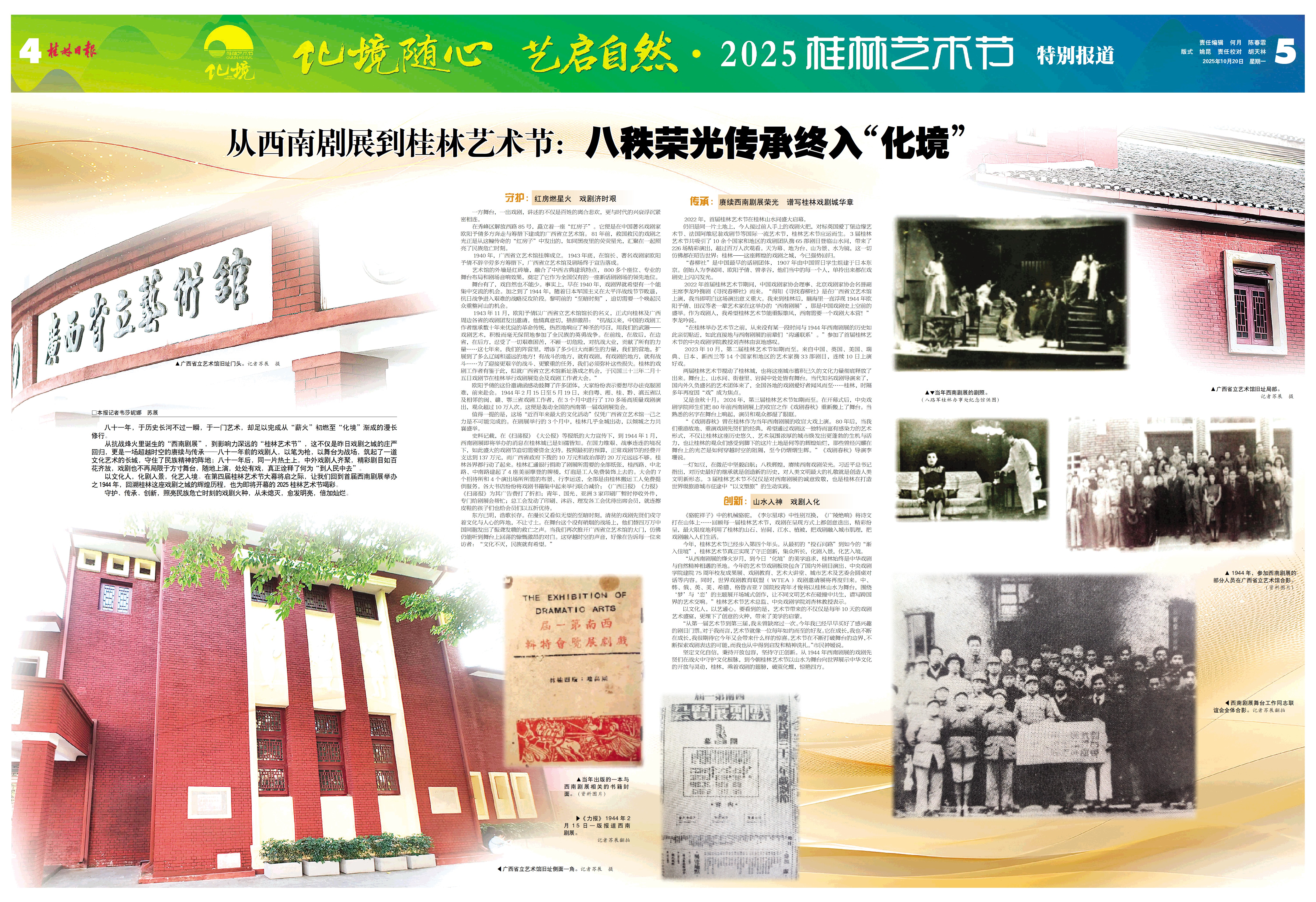 以文化人,化剧入景,化艺入境。在第四届桂林艺术节大幕将启之际,让我们回到首届西南剧展举办之1944年,回溯桂林这座戏剧之城的辉煌历程,也为即将开幕的2025桂林艺术节喝彩。