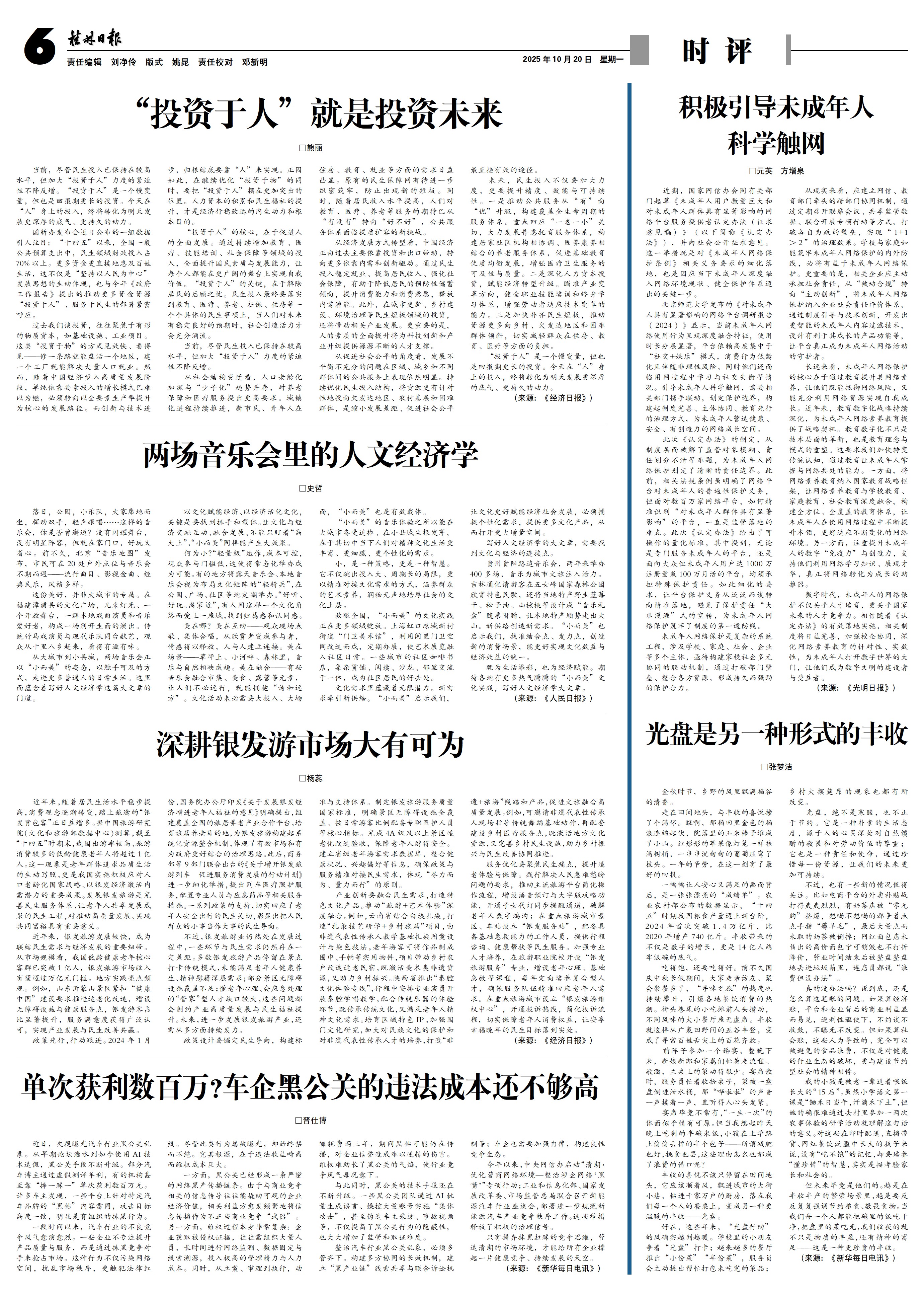 但未来毕竟是他们的。越是在丰收丰产的繁荣场景里,越是要反反复复强调节约粮食、敬畏食物。当我们每一个人都能把碗里的饭吃干净,把盘里的菜吃光,我们收获的就不只是物质的丰盈,还有精神的富足——这是一种更珍贵的丰收。