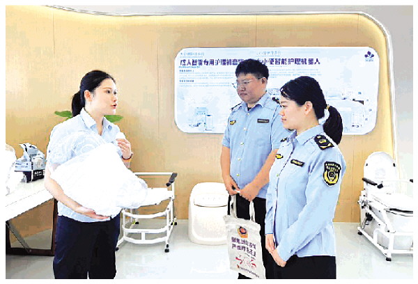 在桂林作为科技有限公司的智能护理数字化展厅内,喂饭机器人运转平稳,智能助行机器人移动灵活,一款能“说话”的智能纸尿裤尤为亮眼——湿度达到设定阈值,立即自动发送提醒。这是近日桂林市市场监管局产业园区分局备案工作人员走访企业时所见的一幕。