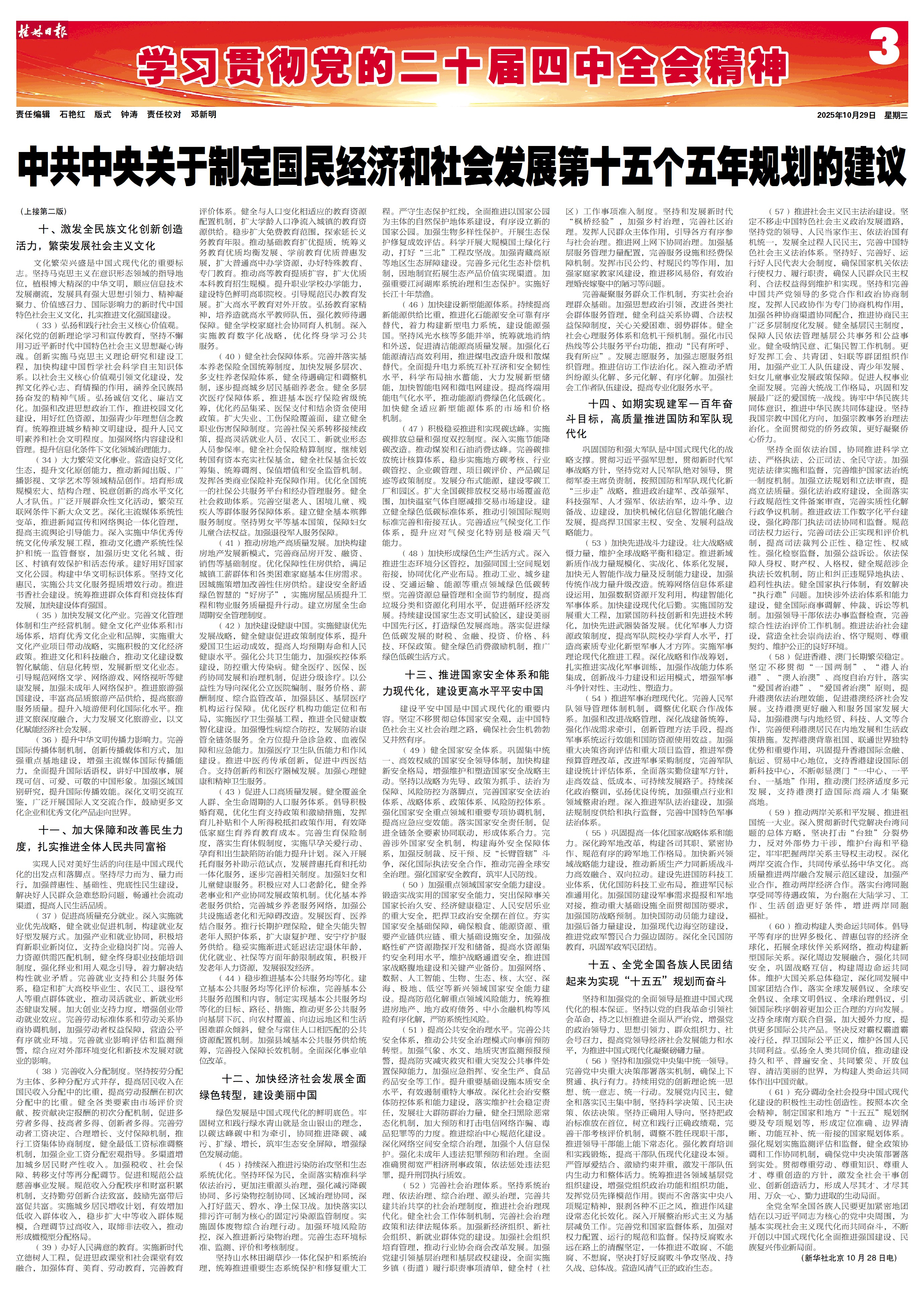 中共中央关于制定国民经济和社会发展第十五个五年规划的建议
