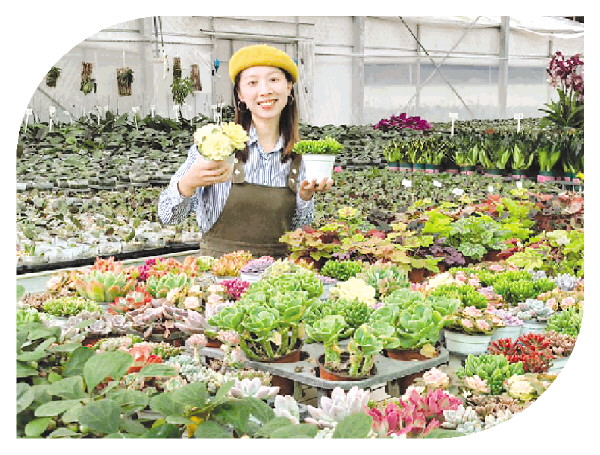 工作人员展示“打卡”免费送的部分绿植种类。记者 周子琪 摄