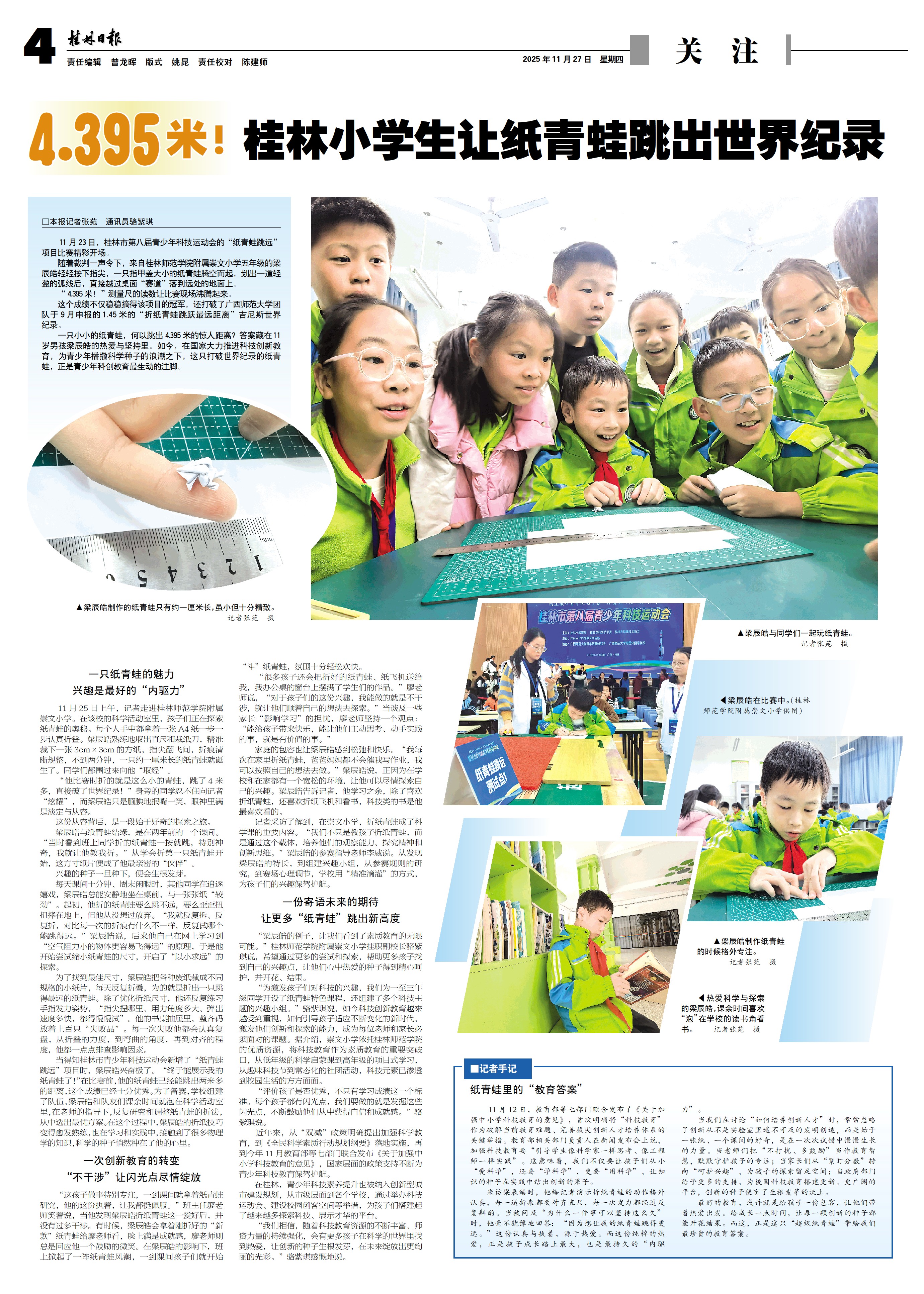 4.395米!桂林小学生让纸青蛙跳出世界纪录