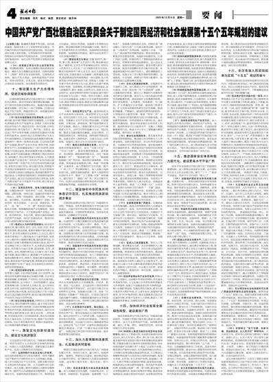 中国共产党广西壮族自治区委员会关于制定国民经济和社会发展第十五个五年规划的建议