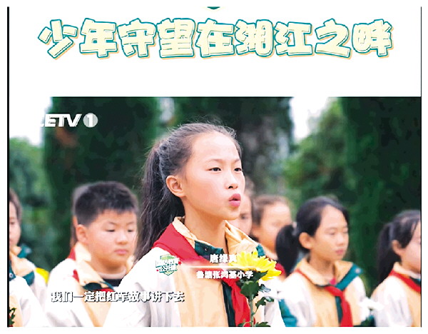 中国教育电视台国防教育公开课《少年守望在湘江之畔》深情聚焦广西全州县咸水镇鲁塘张鸿基小学。(视频截图)