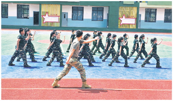 全州县咸水镇鲁塘张鸿基小学学生在接受军体拳训练。 专刊记者文小静 摄