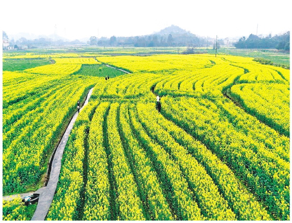本报讯(专刊记者邓琳 李仪灵 实习生邓诗娜)春回大地,万象“耕”新。连日来,随着气温逐渐回暖,全州4.95万亩油菜花竞相绽放。金色的花海不仅扮靓了田间地头,吸引众多游客前来踏青赏春,更让昔日的冬闲田焕发出新生机,变成了农民手中的“增收田”。 早春二月,暖意融融。2月26日,在广西德沁现代农业发展有限公司农业种植基地,千亩油菜花海迎风摇曳,翻涌起层层金色波浪。微风拂过,清新淡雅的花香沁人心脾。油菜花间,蜂飞蝶舞,春意盎然。游客们三五成群,漫步在蜿蜒的赏花小径上,或驻足拍照,或嬉戏游玩,尽情享受这如诗如画的春日美景。“这里连片的油菜花开得非常漂亮,感觉像是走进了画里。今天特意约了几个朋友一起过来踏青,看看花,呼吸一下新鲜空气,心情特别好。”游客盘先生一边欣赏着花海美景,一边笑着说道。 一花多效,一田多用。眼前这片绚烂的花海,不仅是春日里的一道美丽风景线,更是我县探索现代农业发展的生动实践。据了解,油菜浑身是宝:花瓣吸引传粉昆虫,花蕊可酿蜜,菜籽可榨油,嫩茎叶可作为时令蔬菜。待到花期结束,油菜秸秆翻压入土,还是优质的有机肥料,能有效改良土壤、提升地力,为接下来的早稻种植打下坚实基础。 近年来,我县始终坚守粮食安全底线,积极调整农业产业结构,大力推广“稻—稻—油”绿色高产高效轮作模式。通过政策引导和技术扶持,鼓励农业企业、种植大户和农户充分利用晚稻收割后的冬闲田种植油菜,有效补齐了种植“空窗期”,实现“四季无闲田,一田多收入”。据县农业农村局种植业管理股股长蒋启斌介绍,推广“稻油轮作”模式,全县种植收籽油菜4.95万亩,有效盘活了冬闲田,不仅保障了粮油安全,每亩还能为农户增加200元以上收益。 从一季油菜到一片风景,再到一份收入。如今,全州的油菜花正迎着春风“流金淌银”,为乡村振兴注入源源不断的活力。一朵朵小小的油菜花,不仅描绘出乡村最美的底色,更承载着当地群众对新一年丰收的殷切期盼和对美好生活的向往。