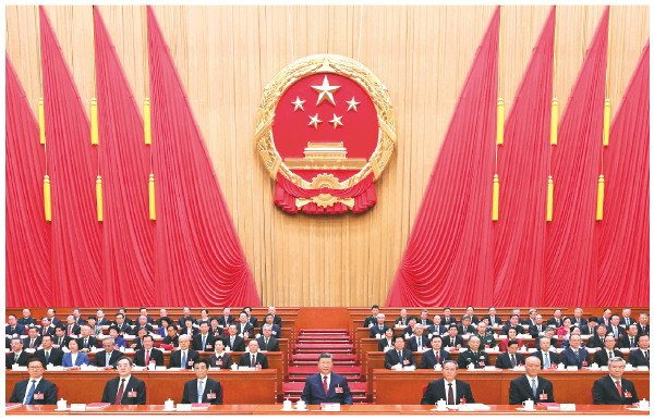 3月12日下午,第十四届全国人民代表大会第四次会议在北京人民大会堂闭幕。党和国家领导人习近平、李强、王沪宁、蔡奇、丁薛祥、李希、韩正等在主席台就座。 新华社记者谢环驰 摄