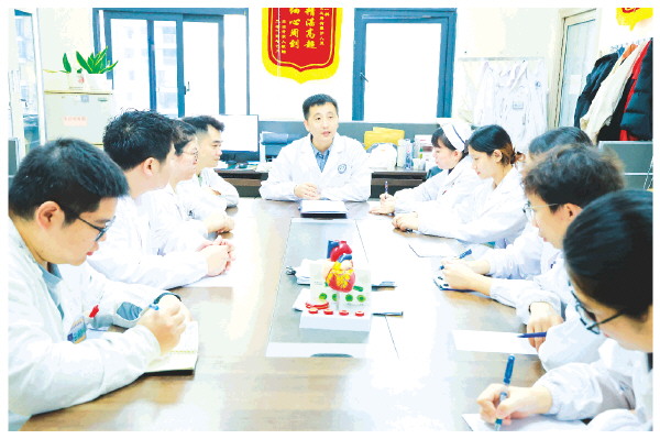 ▲张明在主持全州中医医院内一科心血管介入病例讨论会。