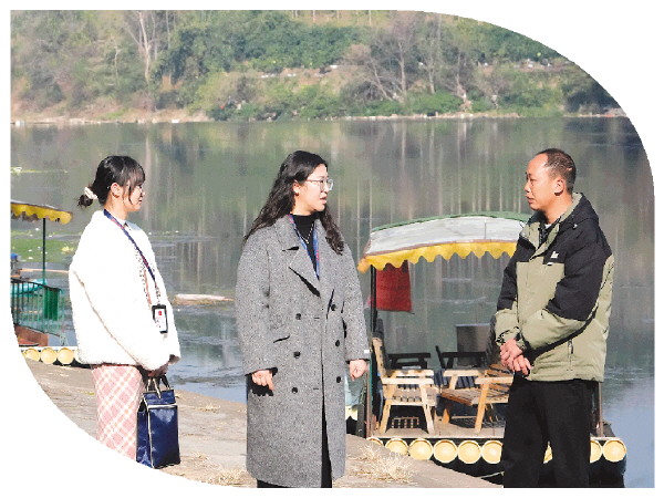 恭城瑶族自治县纪委监委聚焦生态文明建设做实做细政治监督,推动主体责任、监督责任、监管责任同向发力。图为该县纪检监察干部在龙虎乡龙虎村了解河道沿岸环境治理情况。
