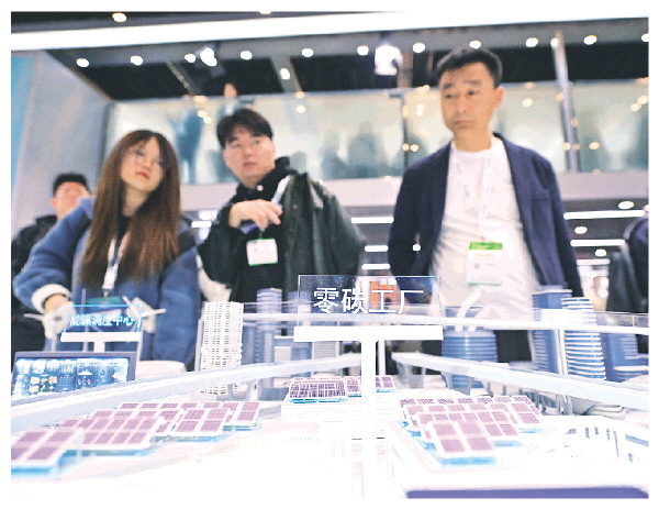 ▲4月2日,观众在第十四届储能国际峰会暨展览会上了解宁德时代的零碳城市全场景解决方案。