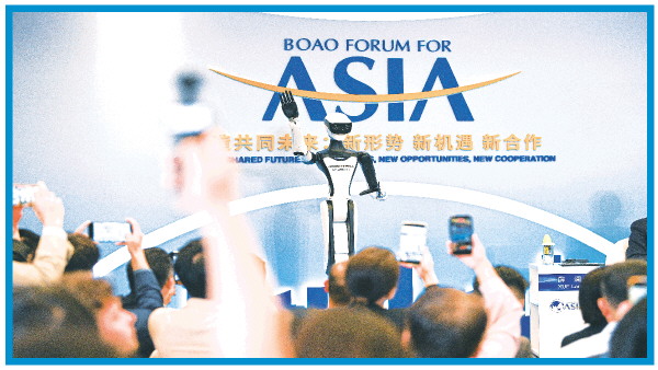 在博鳌亚洲论坛“人形机器人的进阶与飞跃”分论坛上拍摄的机器人。(2026年3月25日摄) 新华社记者 蒲晓旭 摄