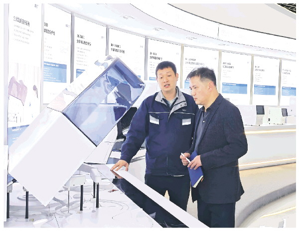 ▲郑毅(右)在企业调研。
