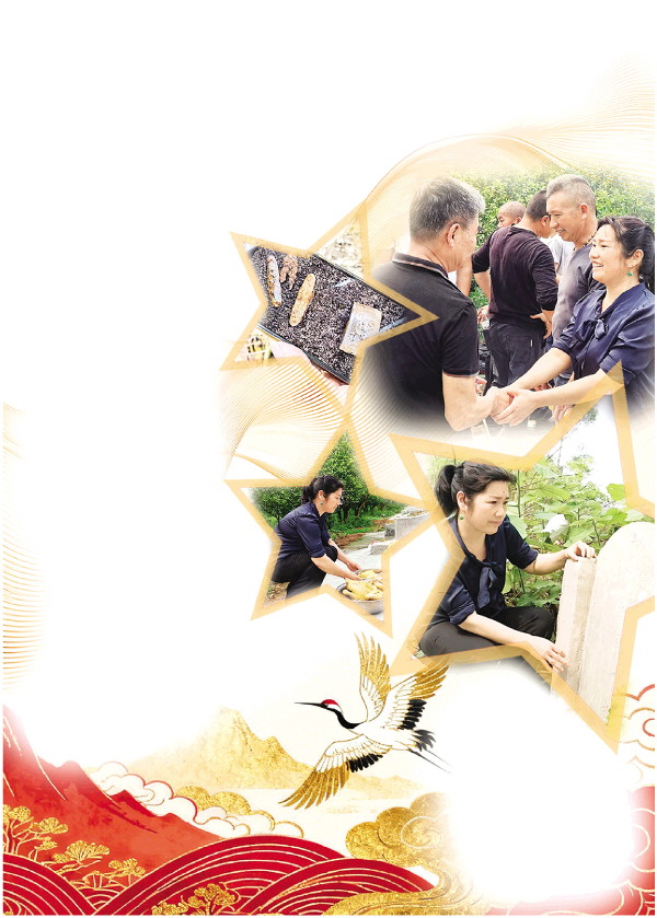 众人缓步来到新墓前。新碑字迹苍劲有力,一旁还立着一块斑驳的旧碑。“这块旧碑我们特意带回来。”卢运忠说,“每次看到它,我们就会想起莫家人的恩情。”众人整理好祭祀用品,有序地清理杂草、擦拭墓碑,依次祭拜。莫玉秀一边烧着纸钱,一边轻声诉说:“太爷爷(卢恒寿),这么多年了,你终于回家了……”她的脸上没有过于悲伤,更多了一份重逢的平和。