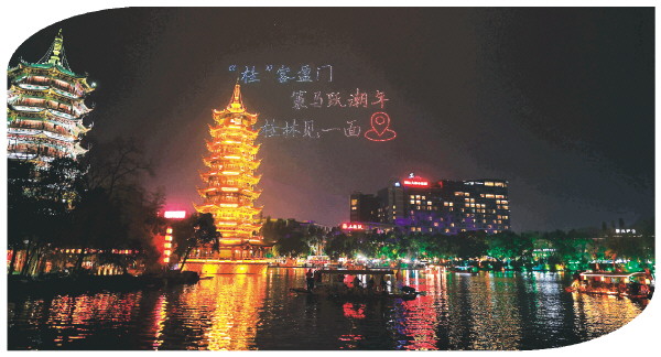 ▲今年春节期间,桂林旅游股份有限公司举行了千机绘天马无人机表演。