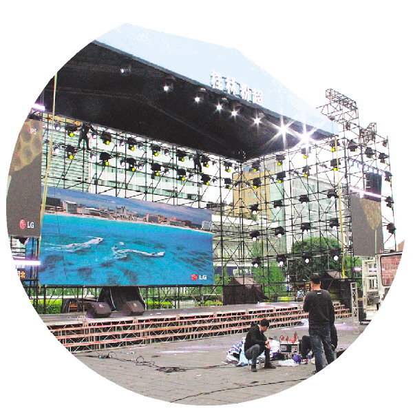 “粉超”主舞台已然落成,工作人员进行最后的设备调试和细节完善,各项准备工作有条不紊。