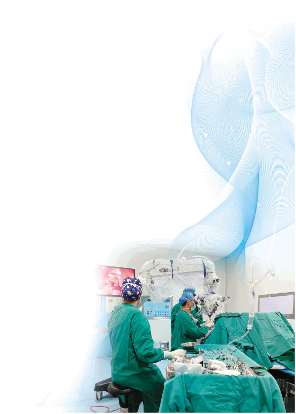 作为一名“既能开颅、又能介入”的全能型学科带头人,蒋小玲个人掌握的技术远不止于此。在功能神经外科领域,他还掌握了三叉神经痛微血管减压术、球囊压迫术;在更前沿的领域,他还掌握了烟雾病脑血管搭桥术、颈内动脉内膜剥脱术、颈7神经移位术治疗偏瘫、脑深部电极置入术、脊髓电刺激术促醒昏迷病人等高端技术。