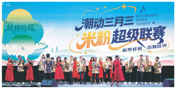 本报讯(记者李思静 文/摄)春夜、晚风、米粉、音乐……4月18日晚,“北大人的音乐行旅”空降“潮动三月三·桂林首届米粉超级联赛”现场,《桂林的米粉任你嗦》《那碗》《对山水》《桂林山水谣》《粉嘟嘟的桂林》及《甲天下未说尽的温柔》等一系列为桂林山水与“粉超”专门创作的歌曲,唱出桂林山水的风光与烟火温情。 “桂林的山,桂林的水,桂林的山水实在美;桂林的岩洞,桂林的歌,桂林的米粉任你嗦……”歌曲《桂林的米粉任你嗦》凭借朗朗上口的歌词,赢得现场阵阵掌声。词曲作者之一,北京大学校友工作办公室主任、北京大学校友会副会长兼秘书长李文胜告诉记者,得知要来桂林演出之后,校友们创作热情高涨。“大家都知道‘桂林山水甲天下’,我们大多也都来过桂林,在创作的过程中便把对桂林风景人文的所思所想都融进了歌里。我们很惊喜看到现场有这么多热情的观众,希望‘粉超’越办越好,也希望通过‘粉超’,吸引更多游客来到桂林。” 演出现场,资深音乐人、跨界艺术家洛兵带来他的经典作品《梦里水乡》,以及专门为广西创作的歌曲《京岛之夜》,悠扬的旋律引发全场大合唱。洛兵在接受采访时表示,自己来过桂林很多次,这里有太多的美好,希望有机会能为桂林创作。 “北大人的音乐行旅”是北京大学校友会发起的特色原创音乐文化项目,凝聚北大校友、师生力量,以原创音乐解读当代中国文明进程,是北大人文精神赋能文旅融合、传播地域文化的重要实践。“北大人的音乐行旅”秉持“一个北大人、行走一座城、留下一首歌、汇成一本书”的行动理念,以北大人的视角、音乐为媒介,在全国各地开展文艺创作与文旅活动。自2024年4月起,已走遍25个省份,累计行程超68000公里,创作推出系列贴合地域风貌的原创音乐作品,兼具人文深度与时代温度。 当晚,巴西里约热内卢科帕卡巴纳要塞乐团也来到了“粉超”现场,为观众带来中国名曲《茉莉花》与热情灵动的巴西经典曲目《雀鸟》,独特的音乐风格点燃现场氛围。