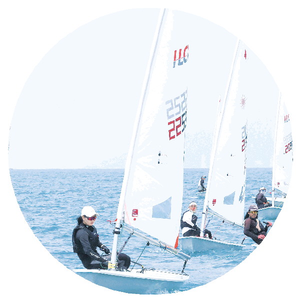 4月23日,第六届亚洲沙滩运动会帆船比赛在海南三亚举行。中国选手颜果果(前)在ILCA4帆船女子第1轮比赛中出发。 新华社记者张帆 摄