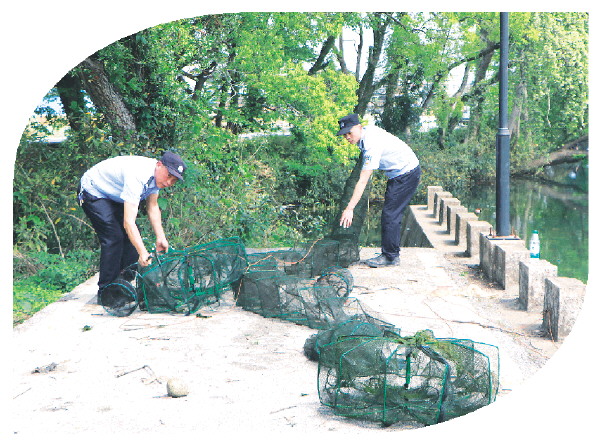 兴安县公安局生态环境保护大队对辖区内各水域开展常态化全面清查行动,重点清理河道、沟渠内非法放置的地笼。