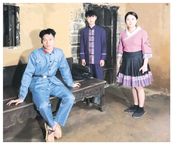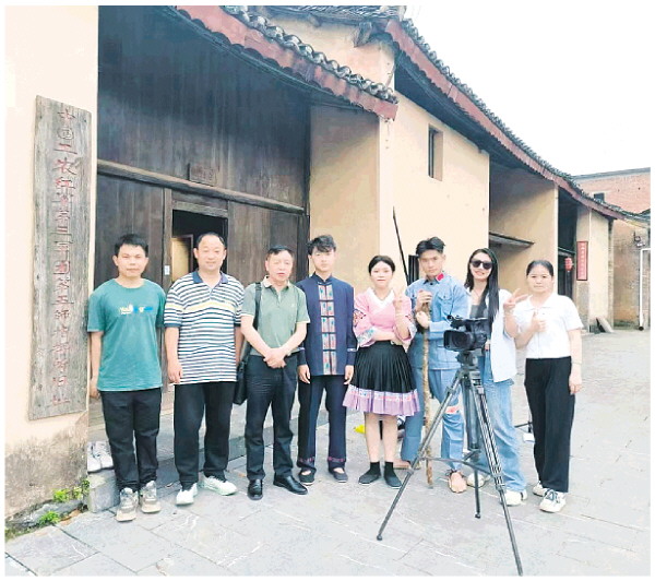 集体陪伴 走出心灵低谷 正当大家一筹莫展之际,转机悄然而至。 桂林学院马克思主义学院邀请传媒与新闻学院合作,打算拍摄两部红色题材微电影《红军旗》和《永远的红军岩》。学院老师们想到了郭琦,建议她参与拍摄,并担任主演,希望她借此找到归属感和力量。两个学院都赞同此建议,并做好了各方面的协调工作,一场温暖的集体托举就此展开。 微电影拍摄工作开始后,师生们来到灌阳县新圩镇,大家站在湘江战役的发生地,马克思主义学院院长张常永与时任桂林学院传媒与新闻学院的院长钟毅,一同为剧组的同学们深情讲述那段历史,同行的老师留意着郭琦的表情。她低着头,但肩膀微微动了一下。 在龙胜红军岩拍摄微电影时,同学们围在一起讨论剧本,对台词,互相打气。郭琦在一部微电影中担任第一人称叙事者,在另一部微电影中出演一个角色。她的台词功底本来就好,虽然右耳听力受损,但声音里那种真诚的质感深深打动了在场的同学们。 “实地站在那里,感触完全不一样。”郭琦告诉记者,“以前红色故事是课本上的文字,但真正走到旧战场、摸到那些岩石上的标语,才明白革命先烈们当时的艰难。而且那么多同学老师陪着我一起走这段路,那种感觉很难形容。” 随着微电影拍摄工作有序进行,渐渐地,郭琦开始主动思考角色的内心世界,用自己的理解去诠释那些英雄人物。拍摄间隙,她会主动和同学们一起吃饭、聊天,笑容多了起来。红色故事的浸润,集体的关怀,让她重新审视自己。她曾对老师说:“红军战士在那么艰难的条件下都能坚持下来,我也一定能。而且,我不想辜负大家为我做的一切。”