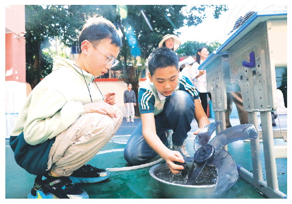 本报讯(记者陈静 文/摄)“螺丝刀递给我!”“防护罩要洗干净点!”“扇叶别装反了!”……4月24日下午,桂林市七星中心校的校园里呐喊声、拆卸声、加油声此起彼伏。在“五一”国际劳动节来临之际,一场以“劳动最光荣”为主题的学生劳动技能大赛正如火如荼地展开。