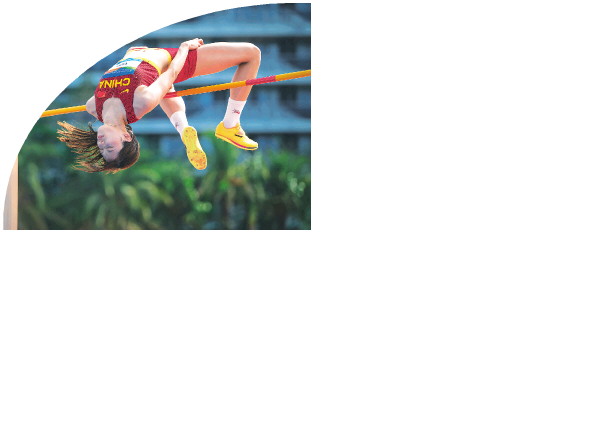 4月26日,在海南三亚举行的第六届亚洲沙滩运动会沙滩田径女子跳高决赛中,乌兹别克斯坦选手巴尔诺洪·赛富拉耶娃获得冠军,中国选手胡麟鹏和邵雨琪获得并列亚军。图为中国选手邵雨琪在比赛中。 新华社记者潘昱龙 摄