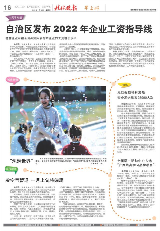 桂林企业可结合自身实际安排本企业的工资增长水平   本报讯(记者唐霁云 通讯员孙勇富)记者从桂林市人社局获悉,为加强企业工资宏观调控,引导企业在生产发展和经济效益提高的基础上合理增加职工工资,日前,自治区人社厅出台了《关于发布2022年企业工资指导线的通知》(以下简称《通知》),我市参照执行。