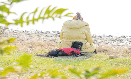 近日,在漓江河堤上,一位休憩的市民和她的小狗背靠着背坐在草地上,静静地享受着冬日的午后时光。记者李凯 摄