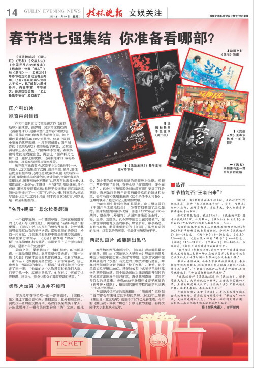 “春节档有7部新片亮相,说明今年开年随着疫情防控政策的优化,电影市场正在逐步复苏,电影公司把自己手里的大片抓紧时间往春节档这个大餐桌上摆。”