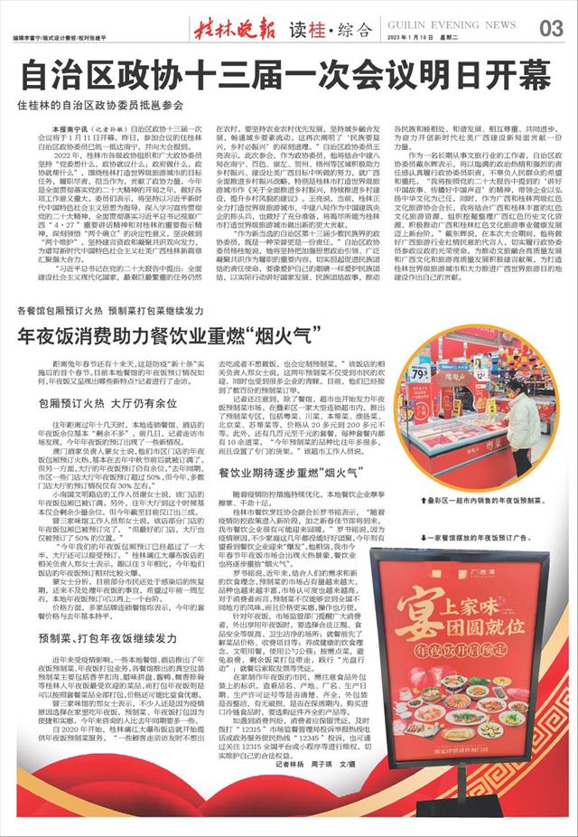 桂林市餐饮烹饪协会副会长罗书铭表示,“随着疫情防控政策进入新阶段,加之新春佳节即将到来,我市餐饮企业很有可能迎来回暖。”罗书铭说,因为疫情原因,不少家庭这几年都没能好好团聚,今年则有望看到餐饮企业迎来“爆发”。他相信,我市今年春节年夜饭市场会出现火热景象,餐饮业也将逐步重拾“烟火气”。