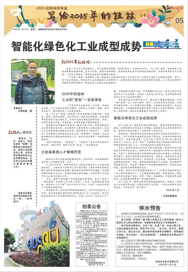 我是一位土生土长的桂林人,写下这封信的时候,是2023年1月。从2016年开始,“十三五”期间,桂林就深入实施创新驱动发展战略,在电子信息、医药及生物制品、先进制造等优势产业和新型功能材料、节能环保等新兴产业领域,一批本土智能化、绿色化企业也在逐渐做大做强。