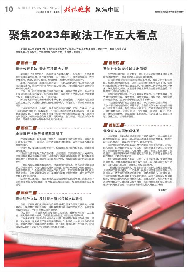 2022年,桂林市各级政协组织和广大政协委员坚持“党委想什么,政协就议什么;政府做什么,政协就帮什么”,围绕桂林打造世界级旅游城市的目标任务,履职尽责,担当作为,贡献了政协力量。今年是全面贯彻落实党的二十大精神的开局之年,做好各项工作意义重大。委员们表示,将坚持以习近平新时代中国特色社会主义思想为指导,深入学习宣传贯彻党的二十大精神,全面贯彻落实习近平总书记视察广西“4·27”重要讲话精神和对桂林的重要指示精神,深刻领悟“两个确立”的决定性意义,坚决做到“两个维护”,坚持建言资政和凝聚共识双向发力,为谱写新时代中国特色社会主义壮美广西桂林新篇章汇聚强大合力。