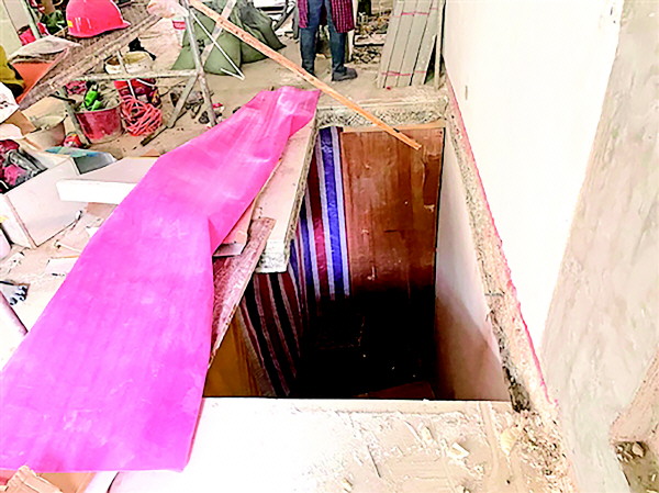 1月13日上午,执法人员来到该住户家中,看到客厅的墙根处有一个长约3米、宽约1米的长方形洞口。据当事人介绍,其所居住的房子为别墅,负1楼为车库。为了方便从客厅直接到车库而挖了一个洞口,没想到会有什么后果。