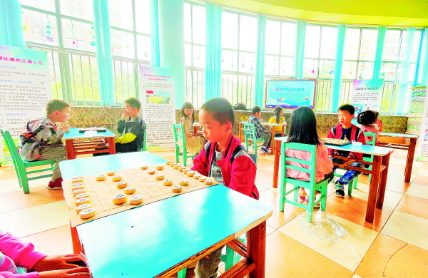 象山区安厦新艺幼儿园的学生们在进行象棋对弈。(资料图片)