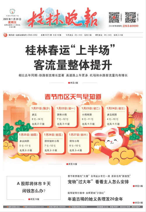 从1月7日至1月18日的数据来看,今年春运“上半场”,桂林火车站发送旅客人数相比去年同期明显增长,共发送旅客35.9万人次,日均3.0万人次。其中从1月16日起日均发送已达3.2万人次,与去年同期相比增长了24.3%。火车站工作人员说,“随着疫情防控政策的调整,今年春运首日的客流量就已经不小了,从1月14日开始,客流进入最高峰,预计高峰期将持续到20日。”