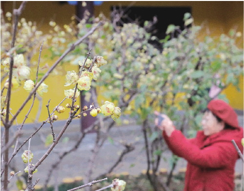 近日,西山公园的腊梅盛开,金灿灿的腊梅花挂满枝头,一阵阵幽香沁人心脾,给人们送来春的气息。