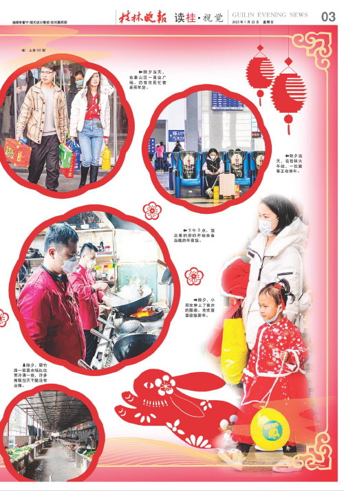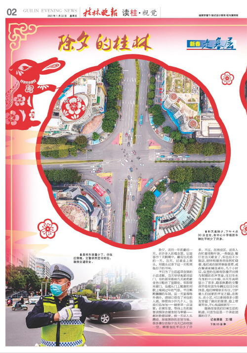 除夕的桂林   除夕,农历一年的最后一天。在许多人的观念里,它是春节7天假期中,最有仪式感的一天。当天,记者走上街头,用镜头记录下这一天和其他日子的不同。