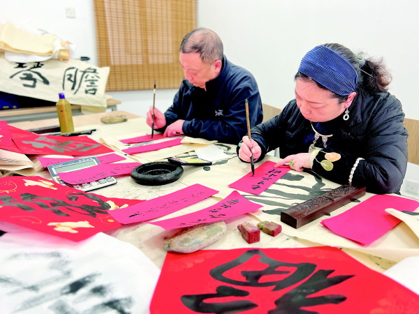 2月1日,桂林市群众艺术馆的工作人员在准备元宵节猜灯谜活动的材料。通讯员唐高君 摄