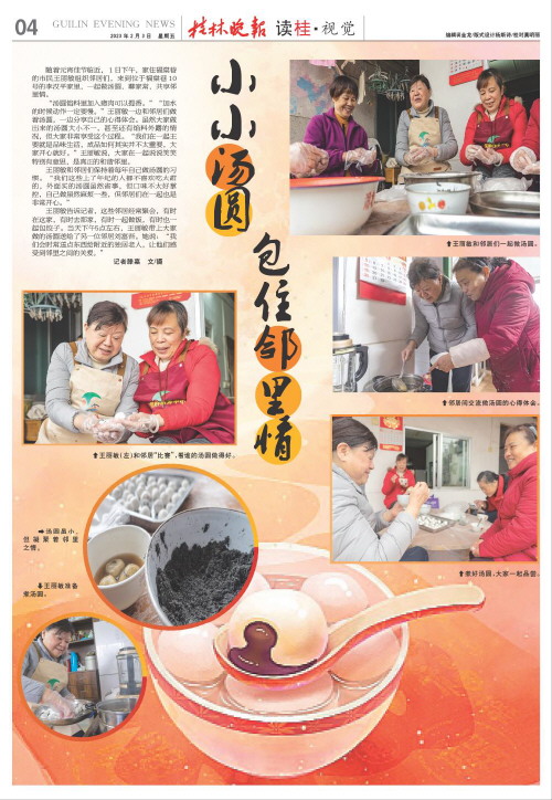 碗碗汤圆香 浓浓邻里情   后天就是元宵佳节。2月1日下午,家住福棠巷的几位街坊聚在一起,一起做汤圆、聊家常,共叙邻里情。汤圆包好后,大家还会拿一些给附近的独居老人。