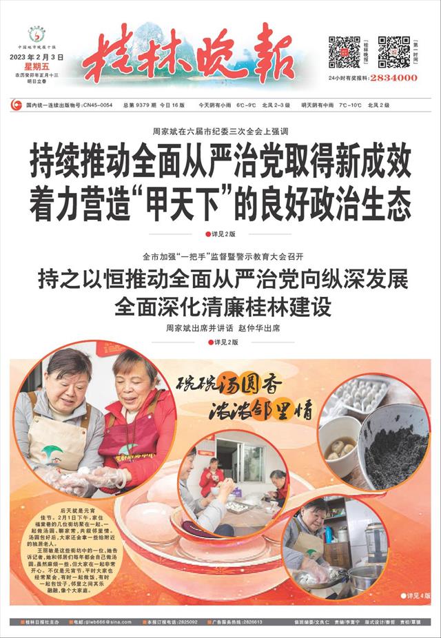 着力营造“甲天下”的良好政治生态   本报讯(记者周绍瑜)2月2日,六届市纪委三次全会召开,深入学习贯彻党的二十大精神,认真贯彻落实习近平总书记在二十届中央纪委二次全会上的重要讲话精神,按照中央纪委全会、自治区纪委全会部署要求,总结分析我市去年党风廉政建设和反腐败工作,部署今年任务,奋力推动全面从严治党取得新的更大成效。自治区人大常委会副主任、桂林市委书记周家斌出席会议并讲话,强调要坚持以习近平新时代中国特色社会主义思想为指导,深刻领悟“两个确立”的决定性意义,坚决做到“两个维护”,以党的二十大精神为指引,深入贯彻落实习近平总书记关于党的自我革命战略思想和在二十届中央纪委二次全会上的重要讲话精神,认真学习贯彻习近平总书记对广西“五个更大”重要要求,深入贯彻落实习近平总书记视察广西“4·27”重要讲话和对桂林的重要指示精神,发扬彻底的自我革命精神,持续推动全面从严治党取得新成效,着力营造“甲天下”的良好政治生态,为全力打造世界级旅游城市,奋力谱写建设新时代壮美广西的桂林新篇章而团结奋斗。市委副书记、市长李楚,市人大常委会主任赵仲华,市政协主席陈丽华出席会议。