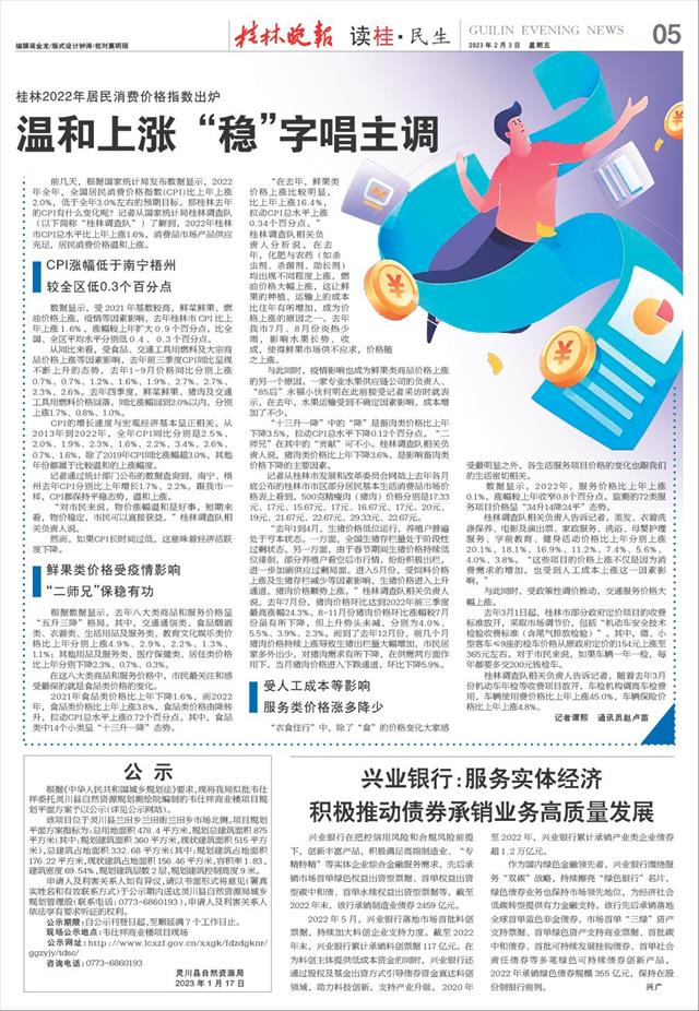 温和上涨 “稳”字唱主调   前几天,根据国家统计局发布数据显示,2022年全年,全国居民消费价格指数(CPI)比上年上涨2.0%,低于全年3.0%左右的预期目标。那桂林去年的CPI有什么变化呢?记者从国家统计局桂林调查队(以下简称“桂林调查队”)了解到,2022年桂林市CPI总水平比上年上涨1.6%,消费品市场产品供应充足,居民消费价格温和上涨。