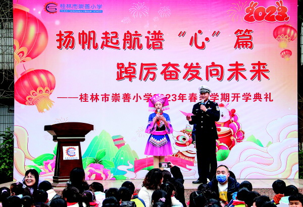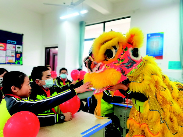 为了让学生感受新学期的新气象,更好融入学校生活,在桂林市二塘中心校,龙狮队变身小狮子来到同学们身边,带来精彩表演,让大家近距离感受中国传统文化。